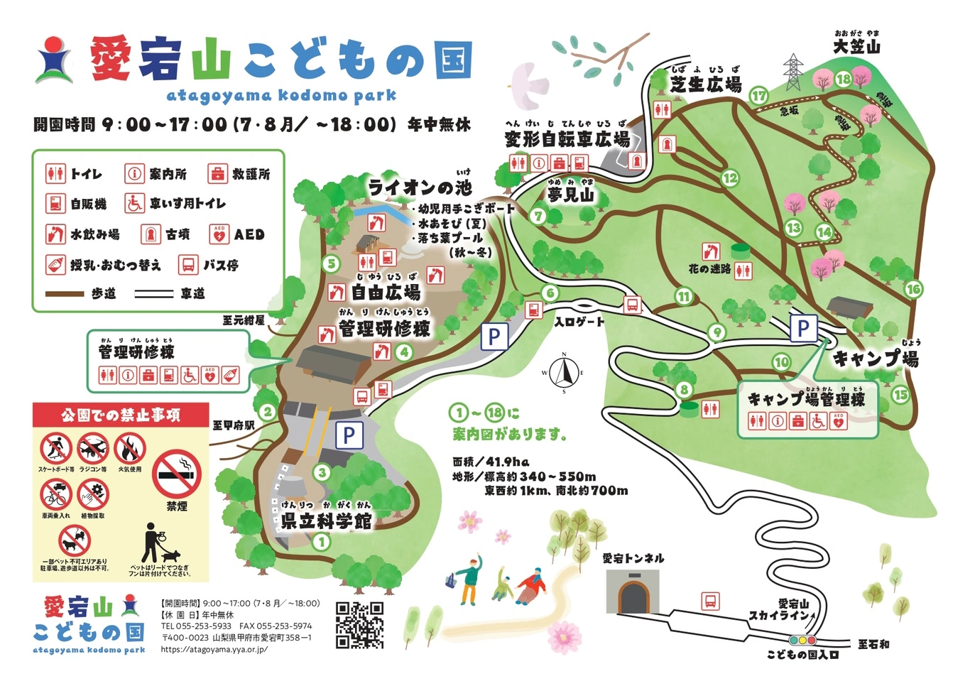 お知らせ ご来園の際のナビゲーション活用のお願い 変形自転車広場 冬季の運営について 公益財団法人山梨県青少年協会正規職員採用試験について お盆期間中の駐車場の混雑状況について 臨時駐車場のご案内 アルバイトの募集について 職員のサングラス着用等について キャンプ場の利用休止について 臨時休園のお知らせ 朝露や結露の影響について 保護者の皆様へ 遊ぶ時の注意! ふわふわドームのご利用について 今までのアクセス 今日 昨日 園内マップ 愛宕山駐車場情報 愛宕山駐車場情報 各施設の運営情報 イベント情報 【幼児・小中学生を含む家族】「親子陶芸教室②」の募集を開始しました。2025-12-9 【どなたでも】「愛宕山で初日の出を見よう!」の案内を掲載しました。2025-12-5 【幼児・小学生を含む家族対象】「つくってみるじゃん 正月飾り~世代を超えて伝えたい~」の募集を開始しました。2025-11-23 令和6年度【自然保育サポート事業】の活動記録を更新しました。2025-9-30 令和7年度イベント案内を掲載しました。2025-4-4 令和6年度イベント案内を掲載しました。2024-3-24 【幼稚園、保育所等幼児の在籍する団体向け】「自然保育サポート事業」の申込みを受付けております。 2023-4-13 愛宕山事業の募集時期について 愛宕山事業の募集は、実施日の概ね1ヶ月前から行います。 募集を開始する際は、HPまたはTwitter、Instagram、LINE等でお知らせいたしますので、ぜひフォローや友達登録をお願いします。 すべてのイベント情報を見る 0 1 2 3 4 5 6 7 8 9 10